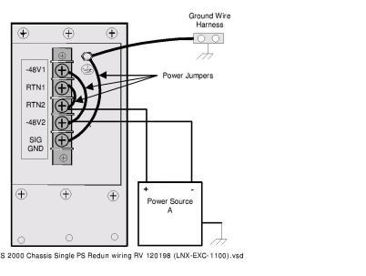 The factory-installed wiring configuration, shown in Factory-Installed Wiring , enables you to connect a single power source to the chassis without adjusting the jumpers.