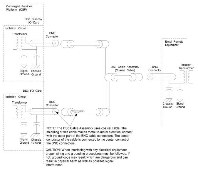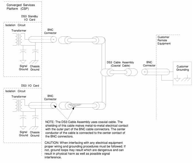 When interfacing the DS3 I/O and DS3 Standby I/O cards with any electrical equipment, proper wiring and grounding procedures must be followed. Refer to the diagrams below as a grounding reference.