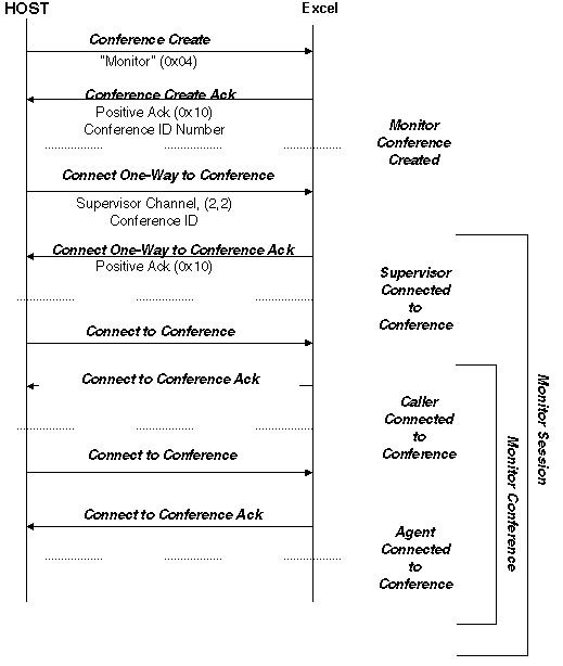 This example shows the API messages transferring a channel from broadcast (listen only) to conference and back again. Dialing "Add Me To Conference" and "Remove Me From Conference" DTMF digit is also shown.