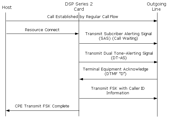 The host application can also send a Subscriber Alerting Signal (SAS). For example, a call waiting tone is sent from the CSP to the subscriber before the FSK protocol signaling process. The sequence of events at the CSP are as follows: