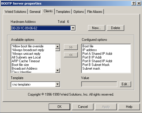 This procedure uses Weird Solutions BOOTP Server NT running on Windows NT but you can use any BOOTP server running on any platform.