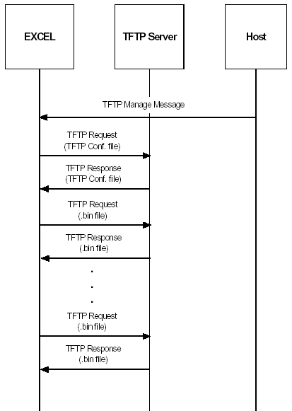 Full TFTP Downloading Using TFTP Manage API message shows a Full TFTP download initiated by the host using the TFTP Manage API message. See Using the TFTP Manage Message.