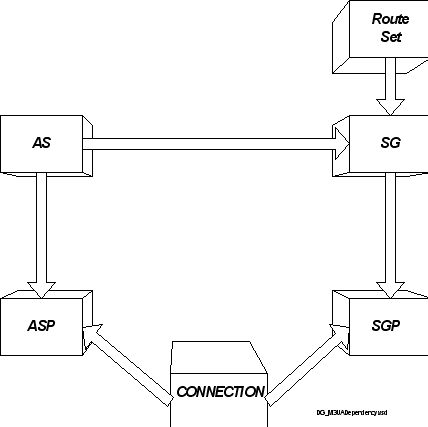 • The connection object points to the Application Server Process and Signaling Gateway Process that the connection object is connecting.