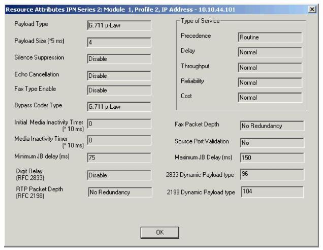 Select a module in the Viewing IP Network Interface Series 2... card view and right-click to open a view of the module’s resource attributes. See the next screen shot.