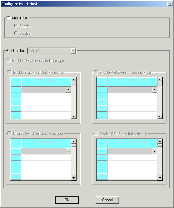 5 If you want to Enable or Disable some of the Switch Initiated Messages select the check boxes for the tables. Specify the messages you want to enable or disable in those tables.