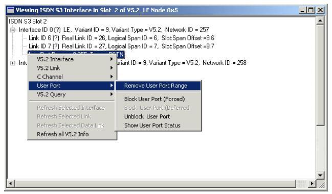 To remove a link, in the Viewing ISDN S3 Interface... dialog box select the link you want to remove, right-click, and then from the menu select, V5.2 Link®Remove V5 Link.