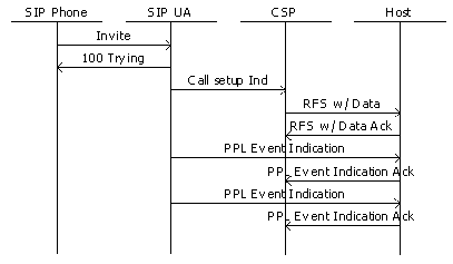 2. As soon as the SIP UA receives the Call Request from the L4_CH, it sends out a PPL Event Indication message of event type (0x0025). This indication is sent out only for the Route Control or Outseize Control message having the Subsequent Information Status TLV with correct data. This PPL Event Indication message will report the following to the host application: