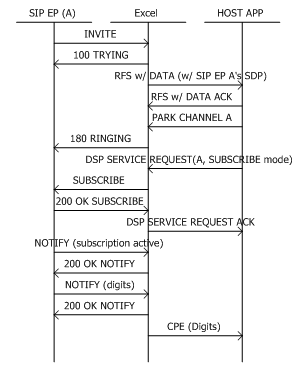 1. When the host application issues a DTMF detection request in the DSP Service Request (0x00BD) message for a SIP call, the CSP tries to initiate a subscription for telephone events with the remote end point using the SUBSCRIBE method.