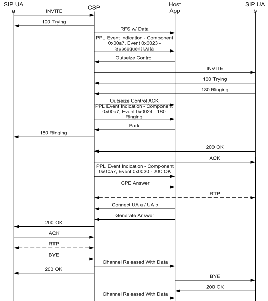 You are here: CSP Developer’s Guide: Internet Protocol > 5 Session-Initiation Protocol (SIP) Software > Tandem SIP-to-SIP Call Flow Example