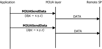 After an application binds to the M3UA layer and receives a RESUME for a given destination, it can start sending data to that destination using M3UASendData. If the call succeeds, but later the message is undeliverable, the application receives a status indication describing the cause of failure. When the message is successfully delivered, no status indication is sent.