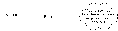 TX 5000E boards can support up to four CEPT E1 trunk interfaces. For typical E1 communications, each E1 interface connects directly to an E1 trunk, as shown in the following illustration: