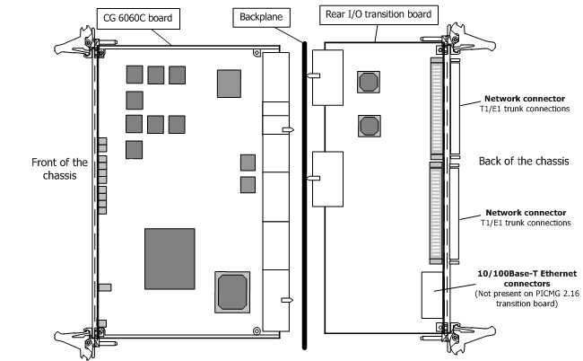 Note: The CG 6060C board powers up and functions only in a chassis with a telephony backplane.